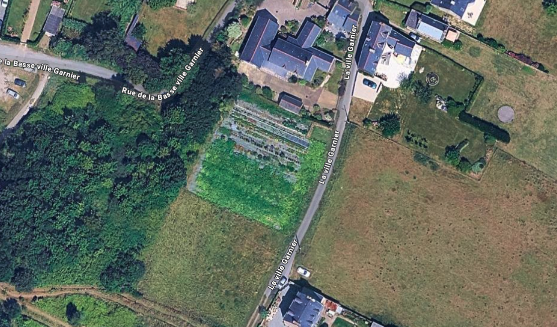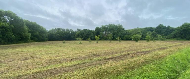 La parcelle de Terrelabouët : parcelle de 9535 m2 en bail rural, l’objectif ici est d’installer un système maraîcher viable économiquement.