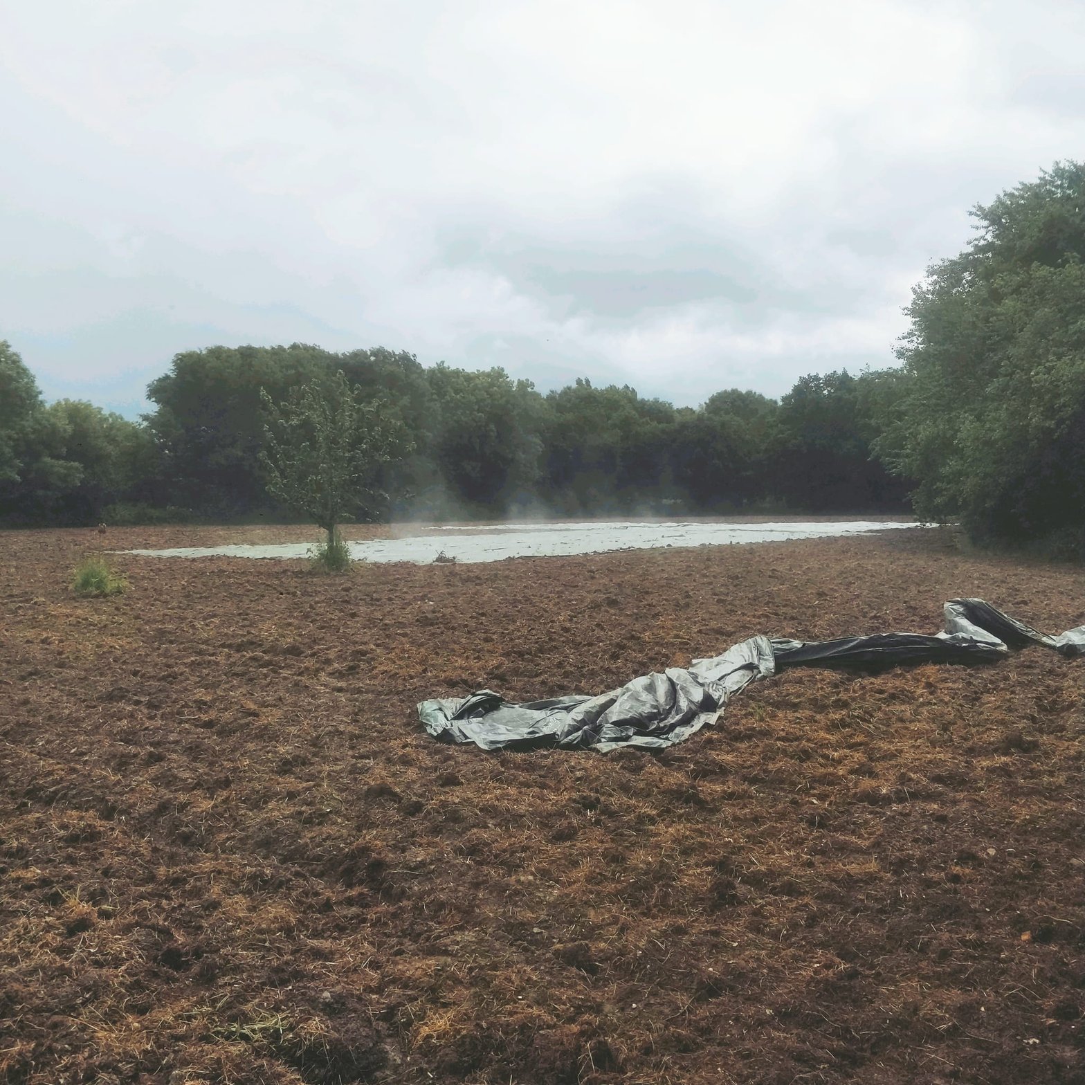 En réalisant la plantation des courges sous la pluie et sous le soleil, j’ai pu voir de mes propres yeux ce qu’était que le phénomène physique d’évapotranspiration. Vous voyez la sorte de fumée au dessus des toiles ? Suite à la pluie et à la chaleur, l’eau qui stagnait sur les toiles tissées s’évaporait sous mes yeux ! Constater des phénomènes physiques est le meilleur moyen de les comprendre - de voir cela, c’était un peu comme si une pomme me tombait sur la tête !